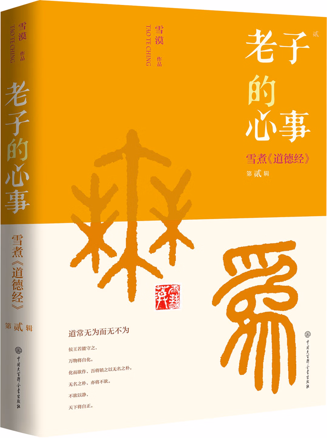 雪漠对《道德经》的阐释在深入解读老子思想和文化内涵的基础上,注重打通传统儒释道文化的一些关窍,同时不滞于章句字词的释文解疑,以深入浅出、晓畅易懂的风格吸引了一大批忠实的读者。此次推出的《老子的心事——雪煮<道德经>第贰辑》延续了“雪煮《道德经》”系列一贯的论述方式,力图在东方哲学的框架内解决现代人的困惑与热恼,并在注解中着力强调经典的学以致用,满足当代不同读者的需要。本书在展现古代中国智慧的同时,希冀以《道德经》五千言帮助读者提升自己的精神境界,获得更多的知行智慧。
